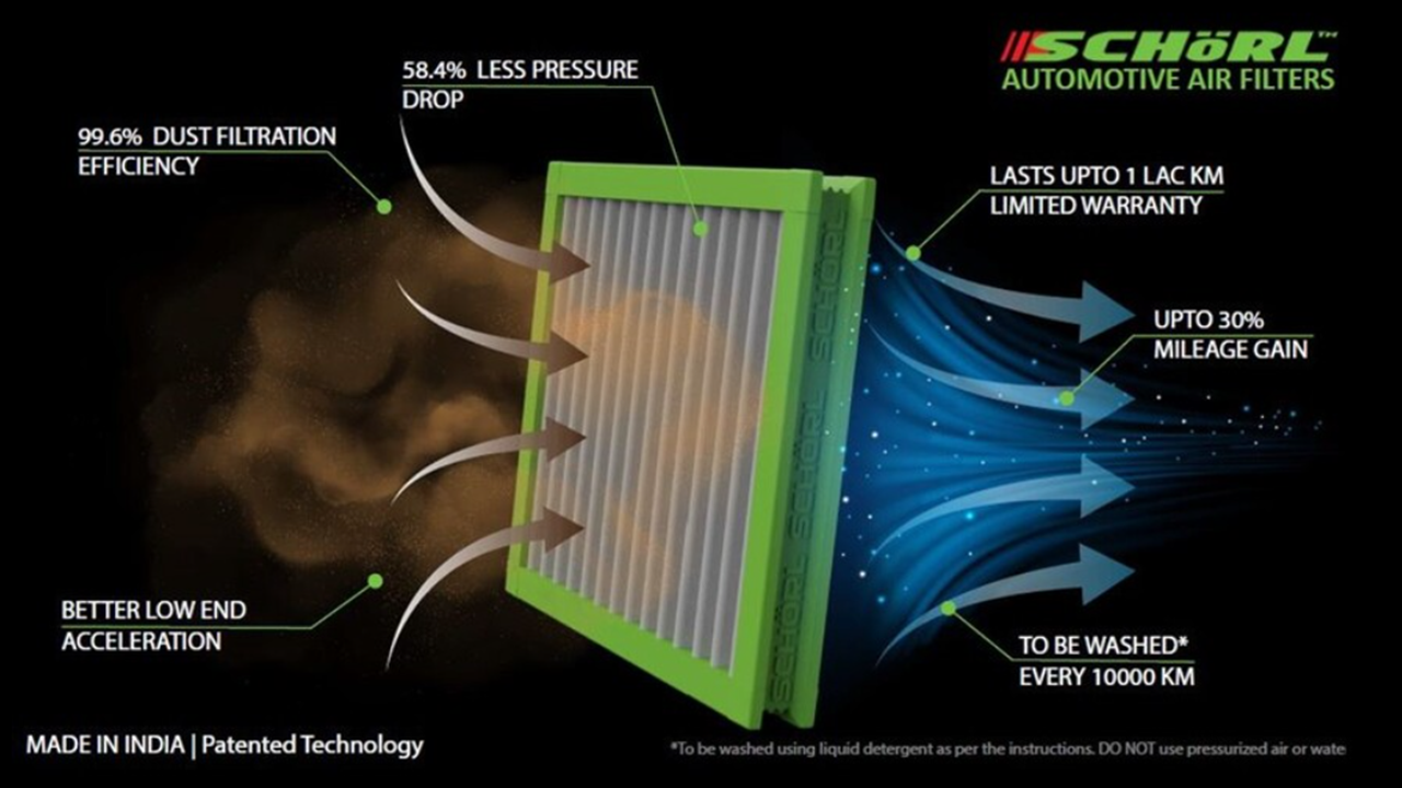 The air filter media ionizes the air entering the engine’s combustion chamber, when an ionized air molecule enters the combustion chamber, it results in better flame propagation, implying better combustion of fuel which also reduces the emission.